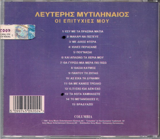 Λευτέρης Μυτιληναίος – Οι επιτυχίες μου (CD, Compilation)