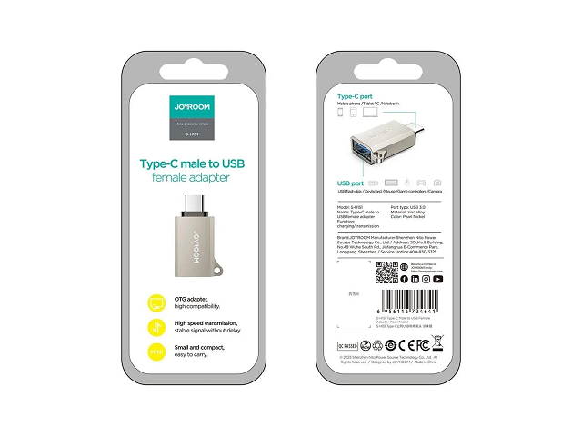 The Joyroom S-H151 adapter is an extremely functional and compact solution that allows you to conveniently connect devices with a USB-C port with accessories equipped with a USB-A connector. With this small adapter, you can easily transfer data, charge devices and use the OTG function. The solid, metal housing guarantees durability and resistance to damage, and its stylish, silver color fits perfectly into modern trends. Additionally, the adapter is equipped with a practical eyelet for a lanyard, which means it is always at hand, ready to use. Thanks to its versatility, compatibility with many devices and ergonomic shape, the Joyroom S-H151 adapter is an essential addition for every user of mobile technology.