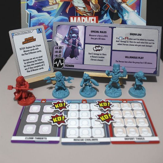 The Guardians of the Galaxy Remix expansion for Marvel United offers some rather unique new content players can add to their games. First, there’s the unlikely heroes of Star-Lord, Rocket Raccoon, and Groot. Each comes with their own unique sculpt and superhero deck. Then, there’s Ronin and his own Masterplan deck. Players can also travel to new and exotic, interstellar Locations. Finally, there’s the Plan B Mission cards. Players can substitute them out for the regular Missions in their games. They’re harder to complete, but finishing all 3 will result in instant victory.