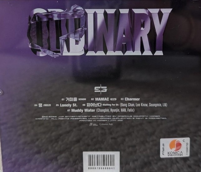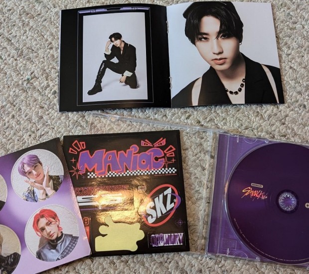 Includes a random photo card (1 of 8 members), 4 photo badges (1 of 2 cardboard sheets, including either Han, Felix, Seungmin and I.N; or Bang Chan, Lee Know, Changbin and Hyunjin), and a sticker sheet.