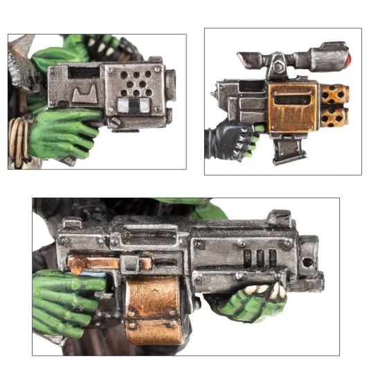 This boxed set contains 11 multi-part plastic Ork Boyz, and includes options for sluggas, choppas, shootas, heavy weapons and stikk bombz. Models supplied with 32 mm round bases.
