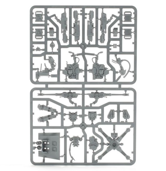 This kit builds one Firestrike Servo-turret. It is supplied with a choice of weapons and comes in 28 plastic components. It comes with an 80mm round base.